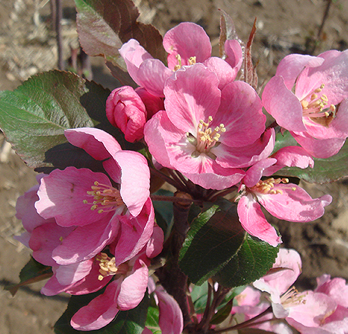 金焰花紅落葉喬木,樹干挺直,樹冠為開放圓形,樹高10米,新葉紫紅色,花為紅色至紫紅色,花序緊密,花期4-5月,果實(shí)亮紅色,略扁呈球形,掛果期長(zhǎng),可掛至冬季,果實(shí)可以加工食品,抗寒性極強(qiáng),適應(yīng)性,哈爾濱,黑河地區(qū)表現(xiàn)良好。