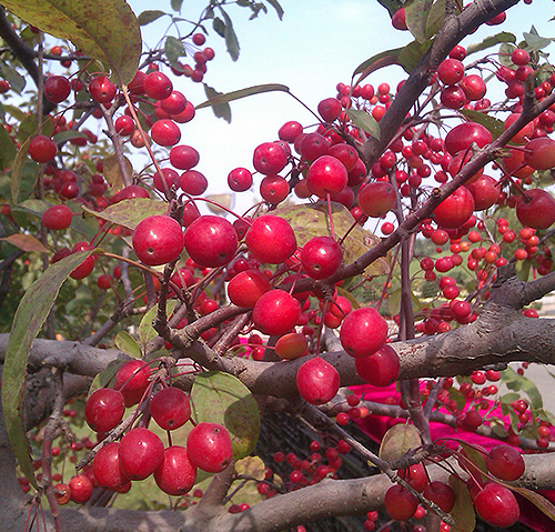 亞斯特落葉喬木,樹高7米左右,春暖花開,萬紫千紅,花芬香,花絮緊密;夏季葉色深綠,枝條酒紅色;果實(shí)球形且果量極大,夏季亮紅,秋季變成透金的橙紅色,果實(shí)可掛至冬季。抗性強(qiáng),是良好的園林觀賞和環(huán)境綠化樹種,哈爾濱地區(qū)種植良好表現(xiàn)。