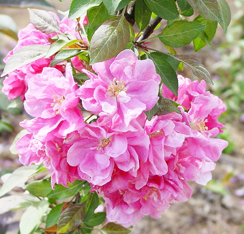 美加歐3號該品種為多次雜交新品種,落葉喬木,樹冠為直立橢圓形,幼苗挺拔,長勢旺盛。花期5月,花蕾深粉色,新葉和枝條酒紅色,成熟葉片背面呈紅色絨毛狀,正面呈亮深綠偏紅,葉色獨特,風中搖曳非常漂亮,幼果紅色,逐漸轉(zhuǎn)為亮紅色,宿果至次年春季,適應(yīng)性強,極其耐寒,是良好的園林綠化樹種,哈爾濱地區(qū)種植表現(xiàn)良好。